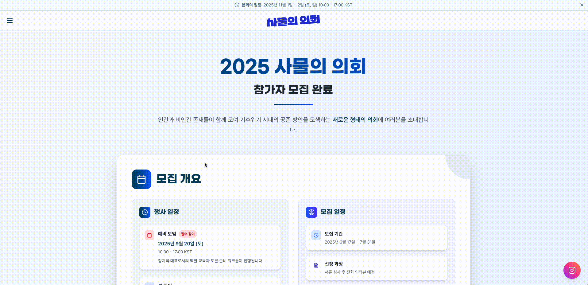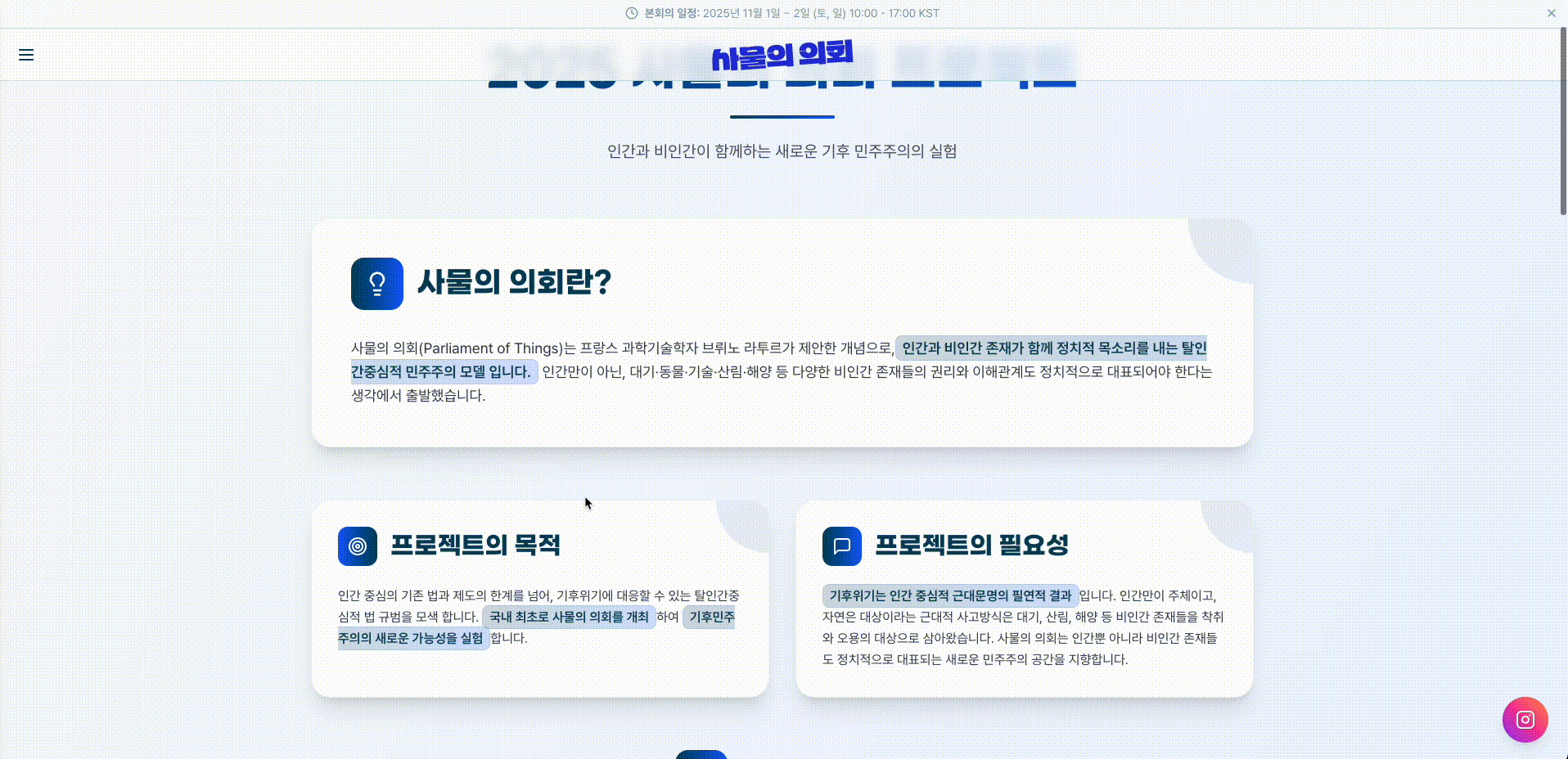 탈인간중심주의 관점의 환경 컨퍼런스 웹사이트 - 비인간 존재들의 권리와 발언권을 고민하는 환경 컨퍼런스 플랫폼 (외주 프로젝트)